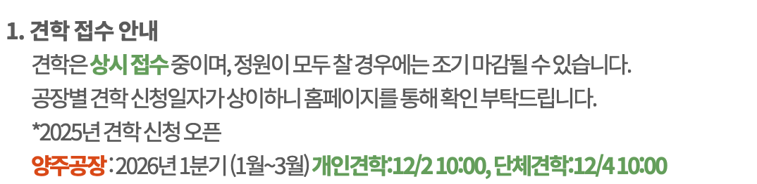 - [양주 신공장 견학신청] 버튼 클릭